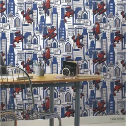 Spider-Man Cityscape Peel And Stick Wallpaper Red/Blue/Gray – RoomMates