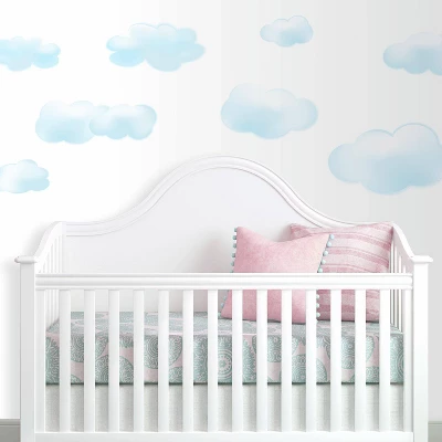 The sky’s the limit when it comes to decorating with these lovely fluffy cloud applique s from Roommates. Clouds work great on the walls, but why not place them on a blue ceiling as well to create a genuine trompe l’oeil sky effect. The 19-piece set of peel & stick decals are easy to use, repositionable and removable with no sticky residue. They wipe clean with a damp cloth.