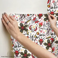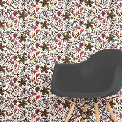 Stranger Things fan, have you ever wished you could join the Hellfire Club? Consider this your invitation! This Stranger Things Hellfire Club Peel and Stick wallpaper from RoomMates is certainly a great way to immerse yourself into your favorite show. Available in multiple colorways and with intricate design detail, you’ll find something new every time you stare at this awesome pattern. True Stranger Things and DnD fans will be able to spot the show’s monsters and the game’s base class characters. Exclusively licensed from Netflix, this peel and stick wallpaper is easy to install and remove! With high-quality vinyl and adhesive, RoomMates Decor peel and stick wallpaper removes in full panels and leaves no residue behind.